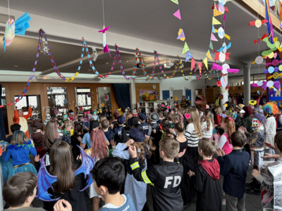 Bunt verkleidet kamen auch in diesem Jahr die Schülerinnen und Schüler am 13.2. ins Schulhaus. Ab 10.30Uhr wurde ausgelassen gefeiert.