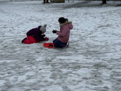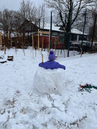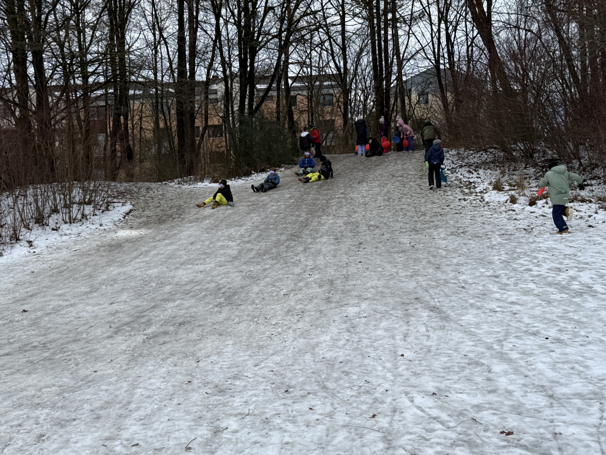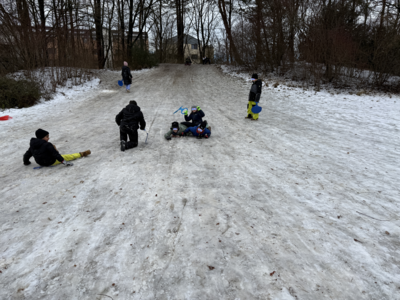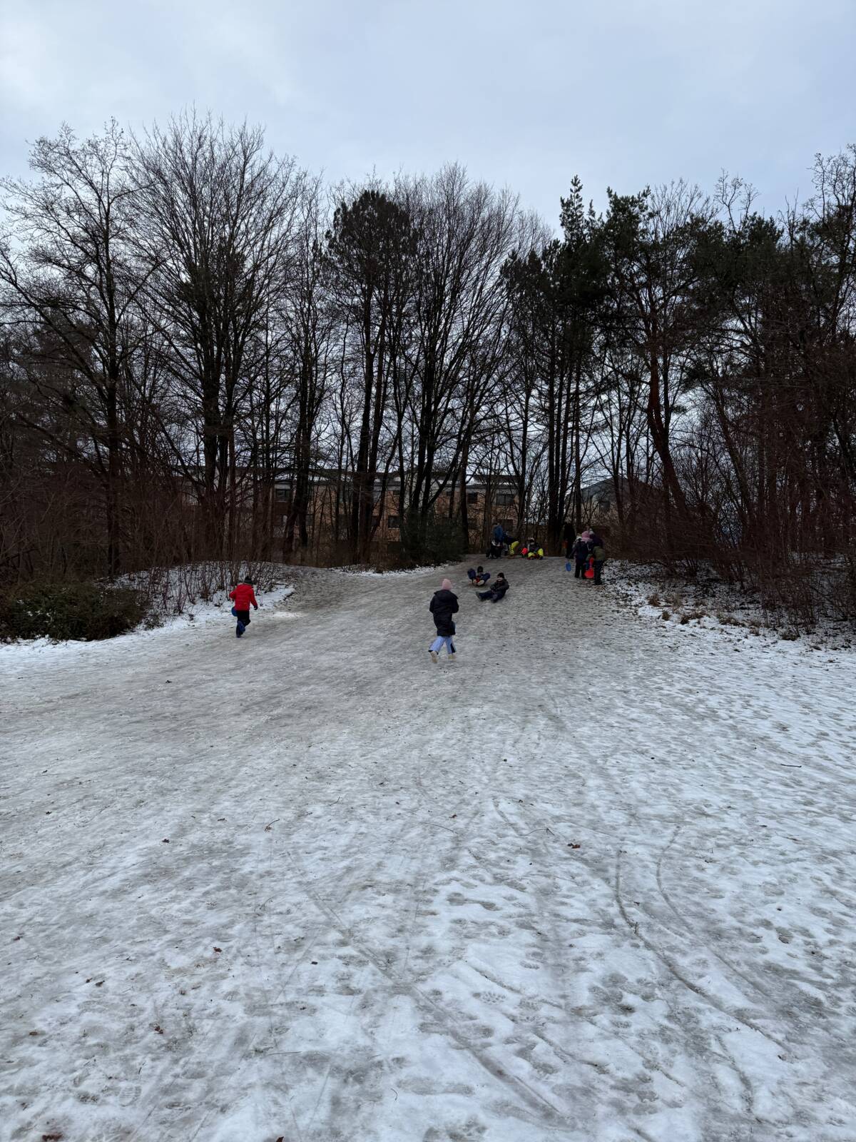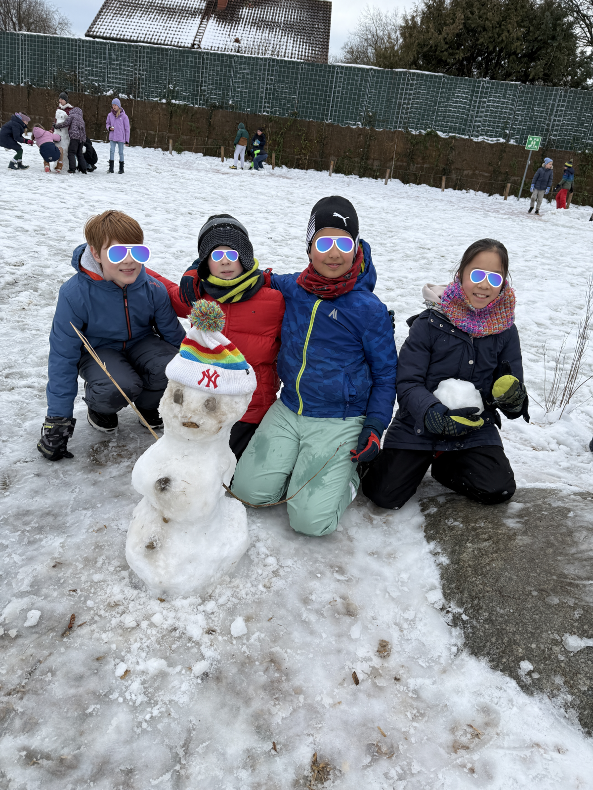 Mit großer Freude wurde der erste Schnee im Schuljahr im letzten Augenblick noch genutzt.